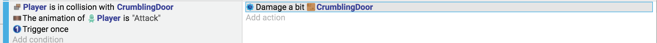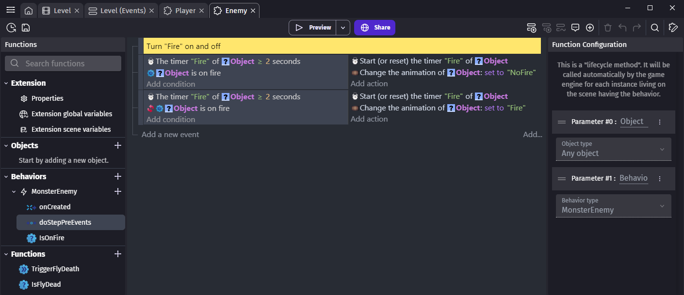As you can see, this allows creating very expressive and easy-to-read events. You can then make the behavior more complex or reuse it on other objects.